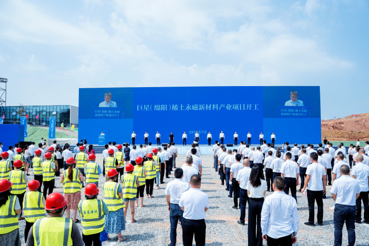 7月29日,巨星(綿陽)稀土永磁新材料產(chǎn)業(yè)項目正式開工建設。四川省省委常委、市委書記曹立軍出席開工儀式并宣布開工,四川省省經(jīng)信廳黨組書記、廳長翟剛出席并致辭。