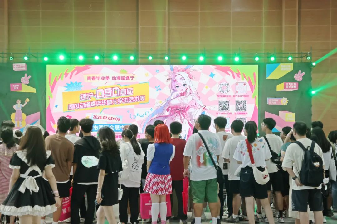 據(jù)悉,本次活動(dòng)是我市“一月一會(huì)展”活動(dòng)之一,特邀千萬(wàn)級(jí)粉絲coser來(lái)到遂寧,現(xiàn)場(chǎng)進(jìn)行舞臺(tái)見(jiàn)面會(huì)和嘉賓簽售會(huì)環(huán)節(jié),與國(guó)風(fēng)動(dòng)漫粉絲們面對(duì)面互動(dòng)交流、簽名、合影留念,同時(shí)吸引了30余家國(guó)風(fēng)動(dòng)漫周邊展商、國(guó)內(nèi)知名動(dòng)漫游戲IP參展,其中8家非遺集市商家。